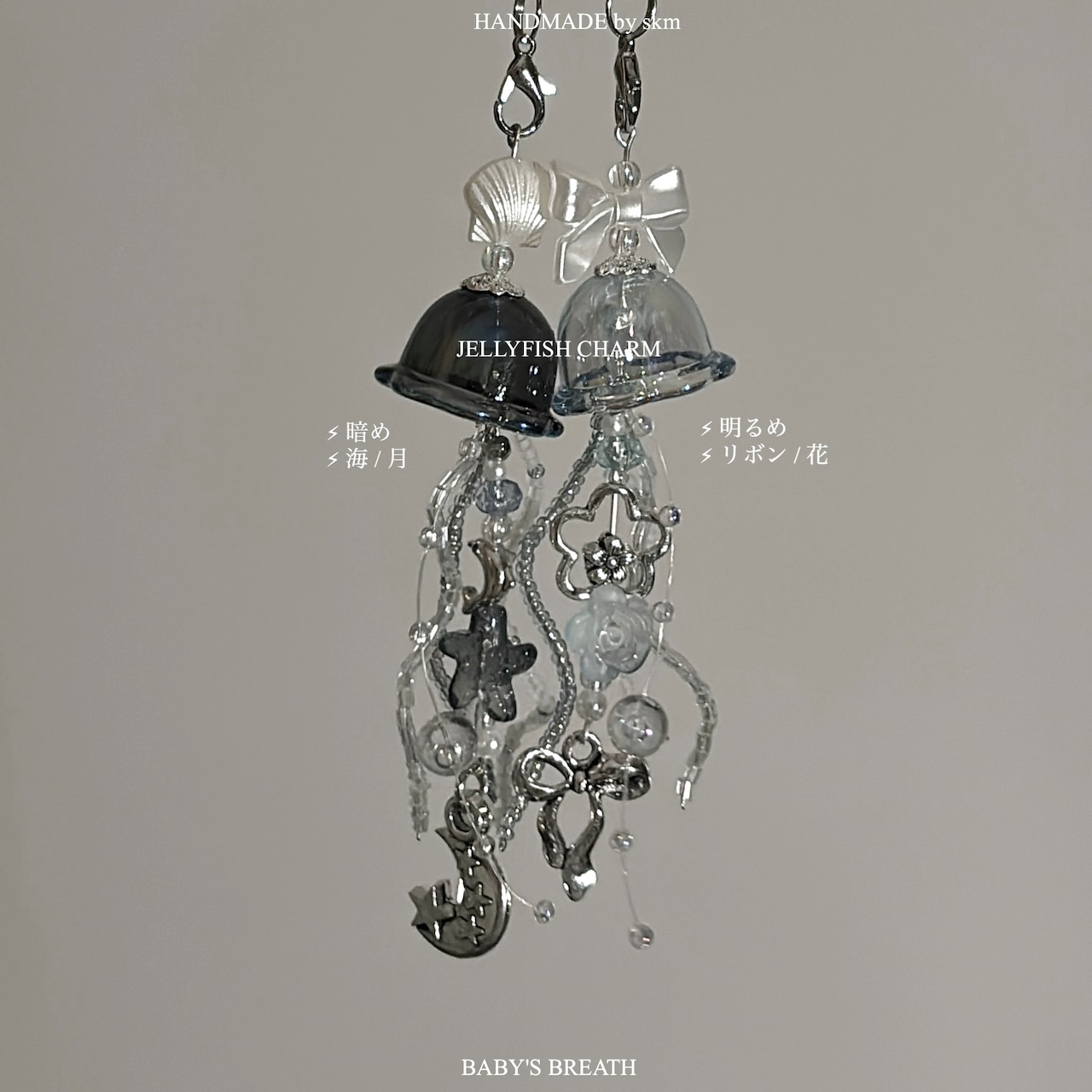 ⚠︎繊細な作品のため既製品と比べ強度が劣ります。また海月の足には針金を使用しているため、力を加えると曲がってしまいます。お好みで形を変えてください。取扱いには十分ご注意ください。